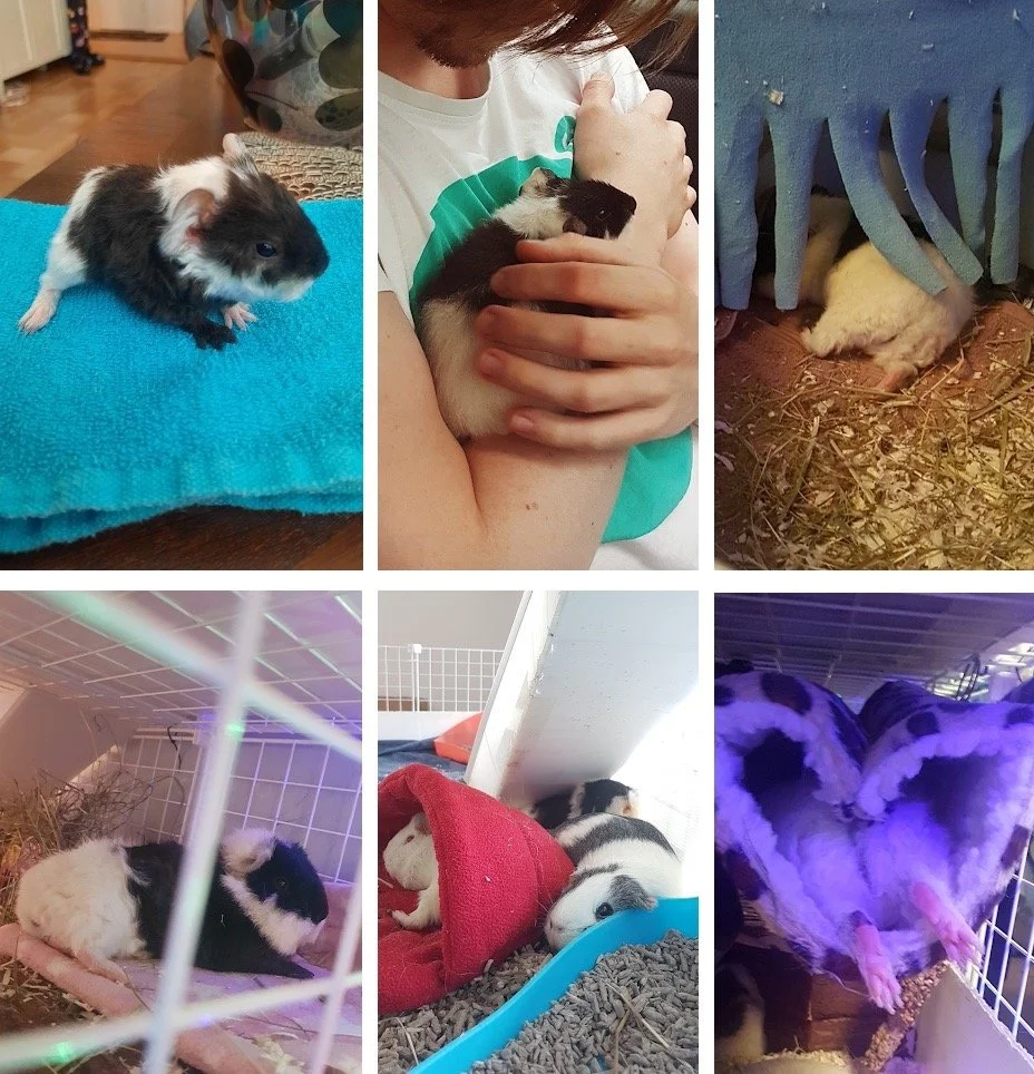 Trussel constantly craves attention, even when anyone is gaming at home. At all times, you’ll see her nose poking up in the corner of her cage because she is very curious. She likes to be close to the rest of her herd but they sometimes find her a little bit annoying. Maybe because she is always stealing all the comfy places or maybe it is because she likes to use another herd member as a staircase to jump on.